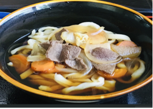がコラボ。ジビエと野菜の出汁のきいた、鹿肉入りうどんをぜひおためしください。